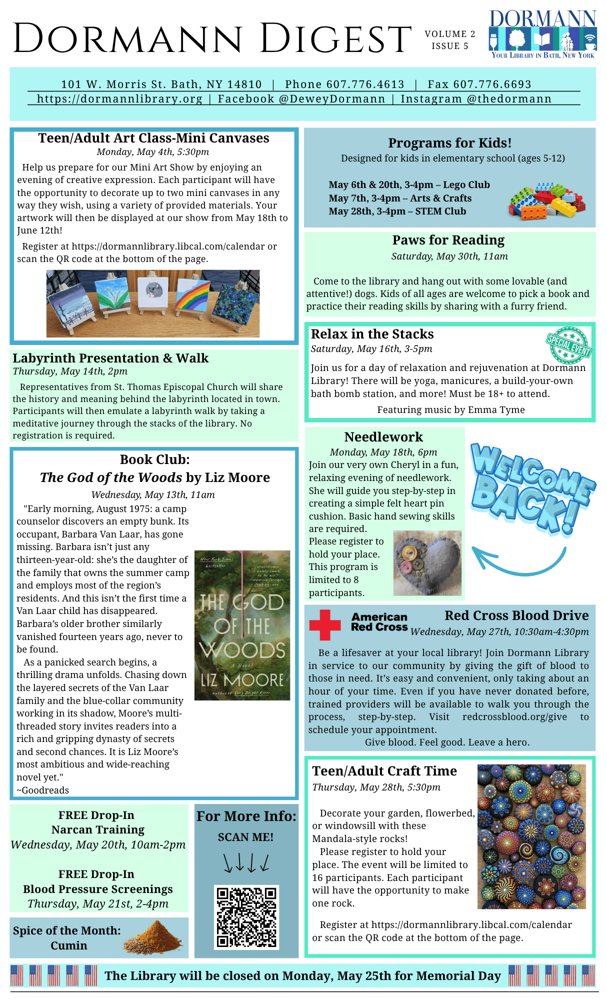 Please note:. The library will be closed Monday April 27 for Staff Development.