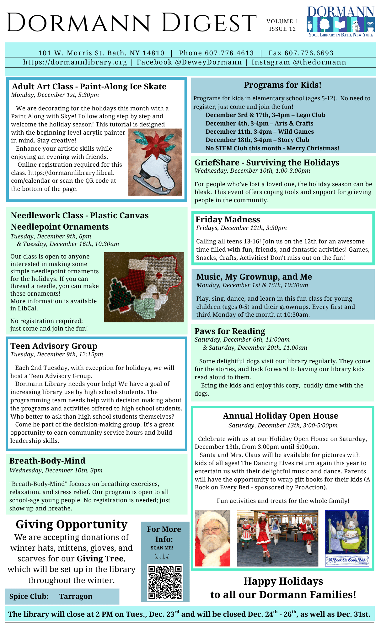 Please note: The library will be closed November 26, 27, and 28 for Thanksgiving.